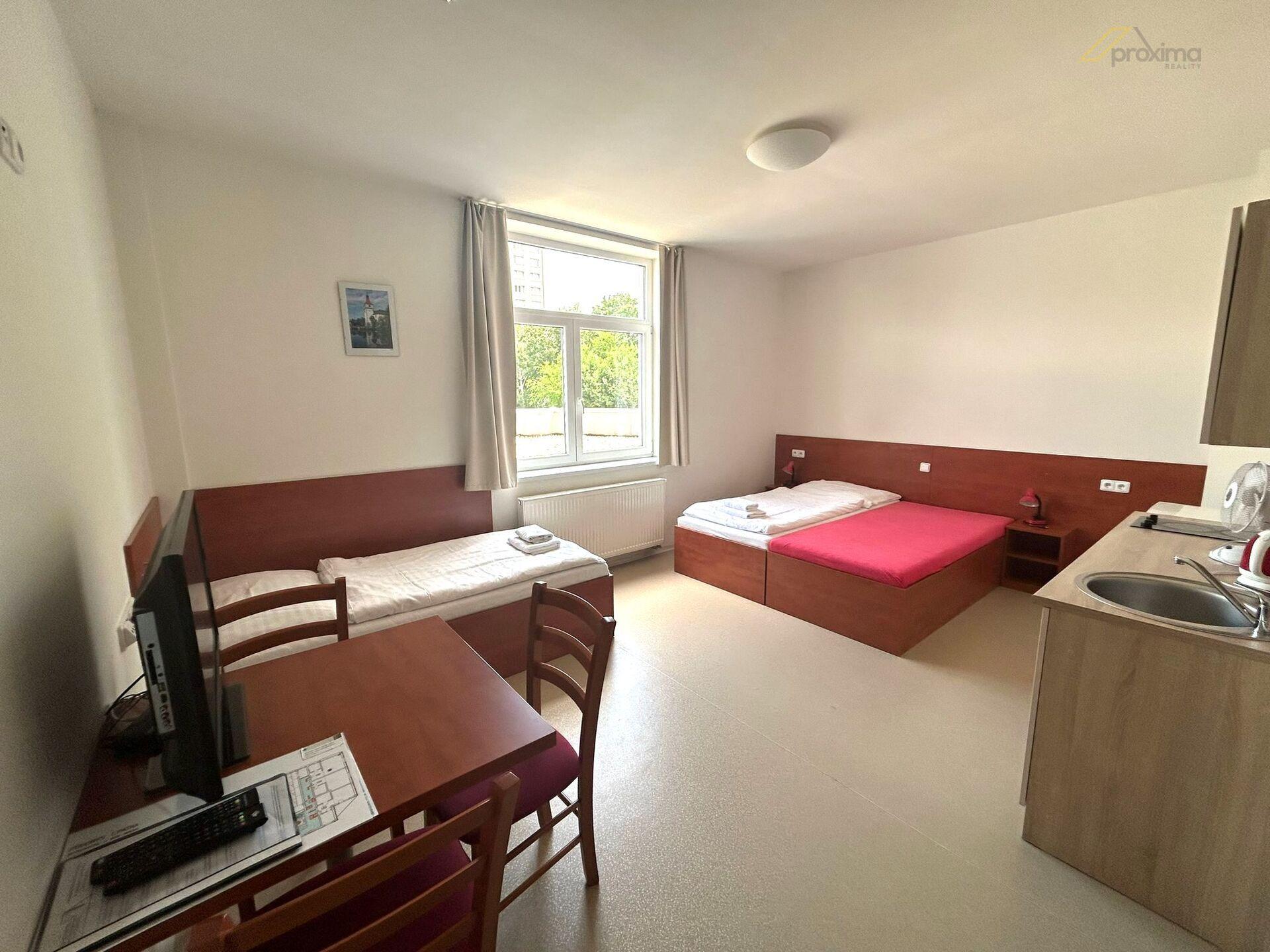 Proxima Reality nabízí ubytovací zařízení: garsonku 1+kk s vlastní kuchyňkou a koupelnou v prostorách Sport Hotelu v Českých Budějovicích, Jiráskovo nábřezí.