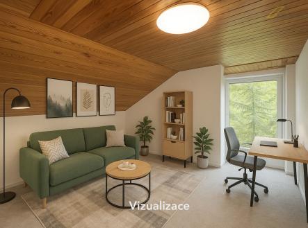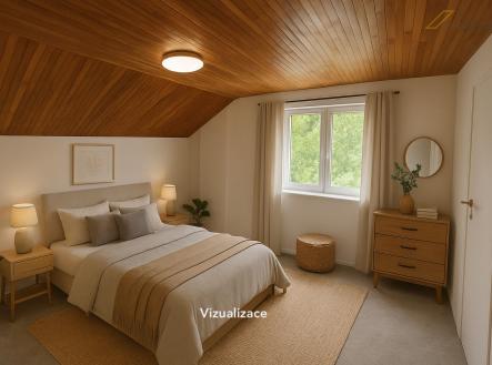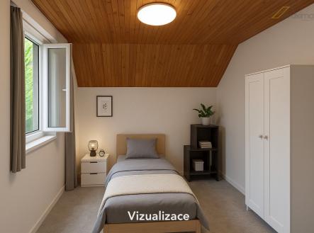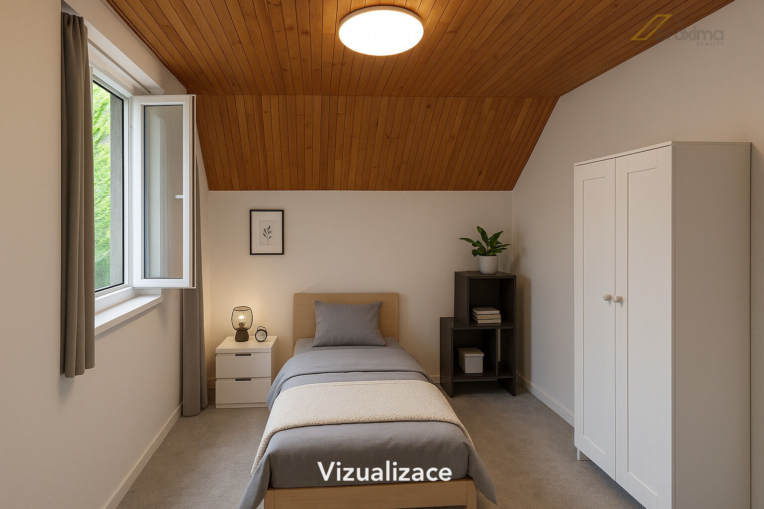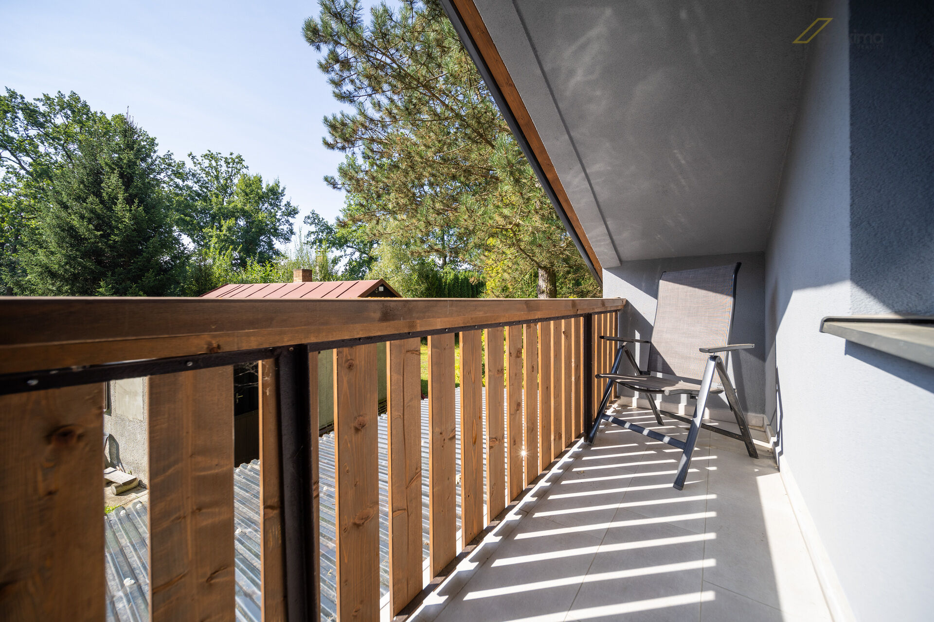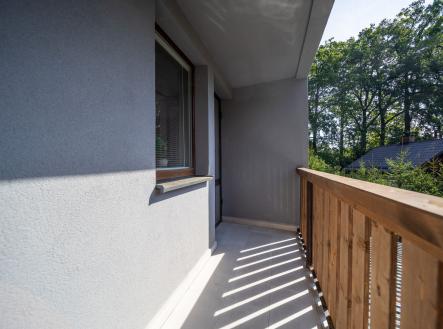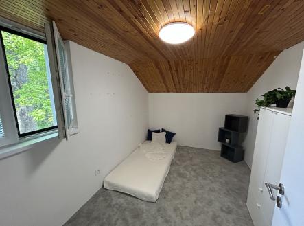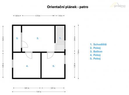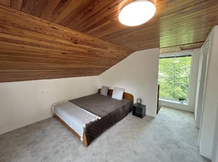 Patro: dvě samostatné ložnice, jeden velký průchozí pokoj a balkon s výhledem do zeleně.