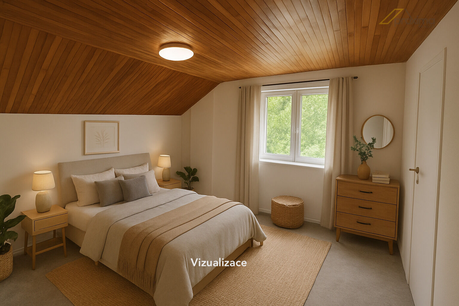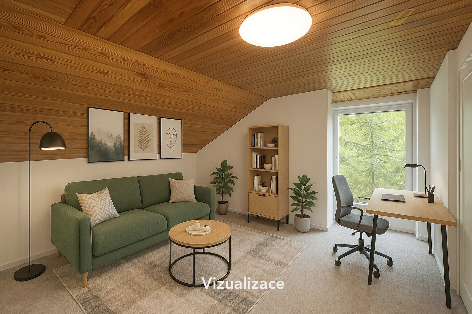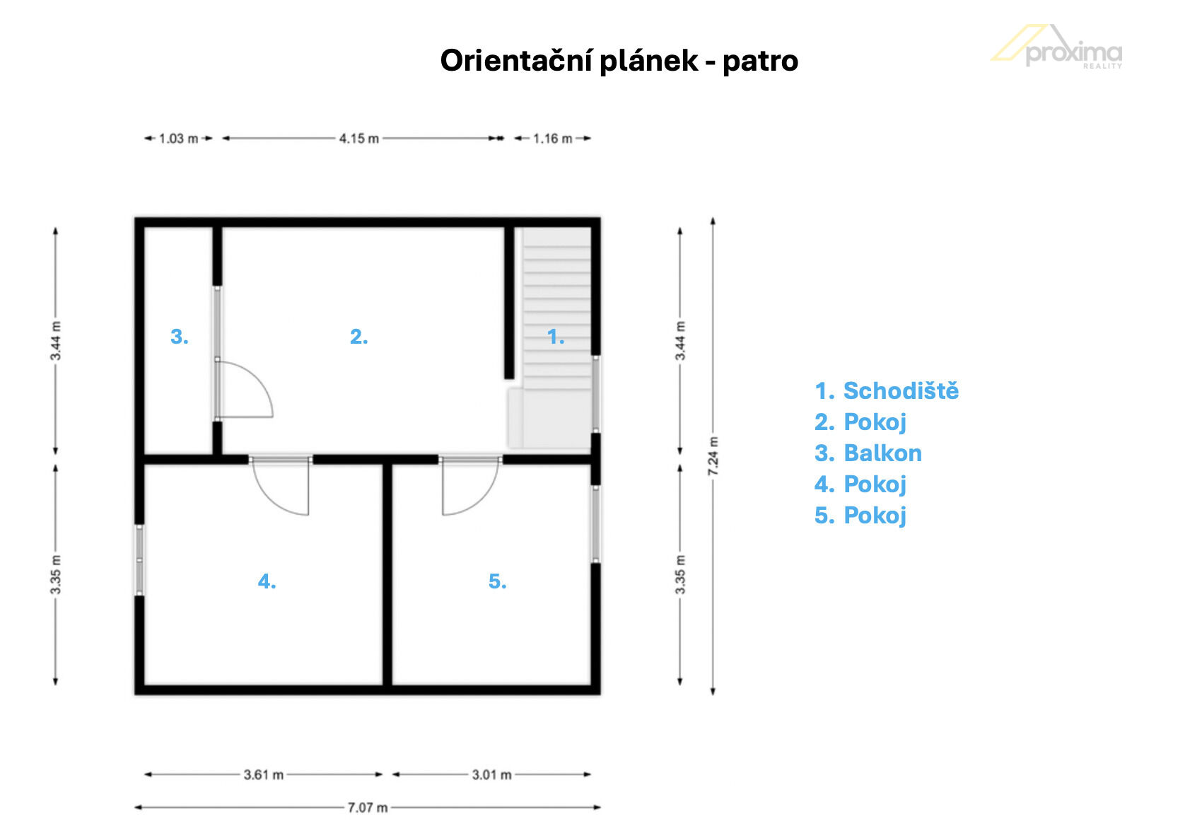 Patro: dvě samostatné ložnice, jeden velký průchozí pokoj a balkon s výhledem do zeleně.