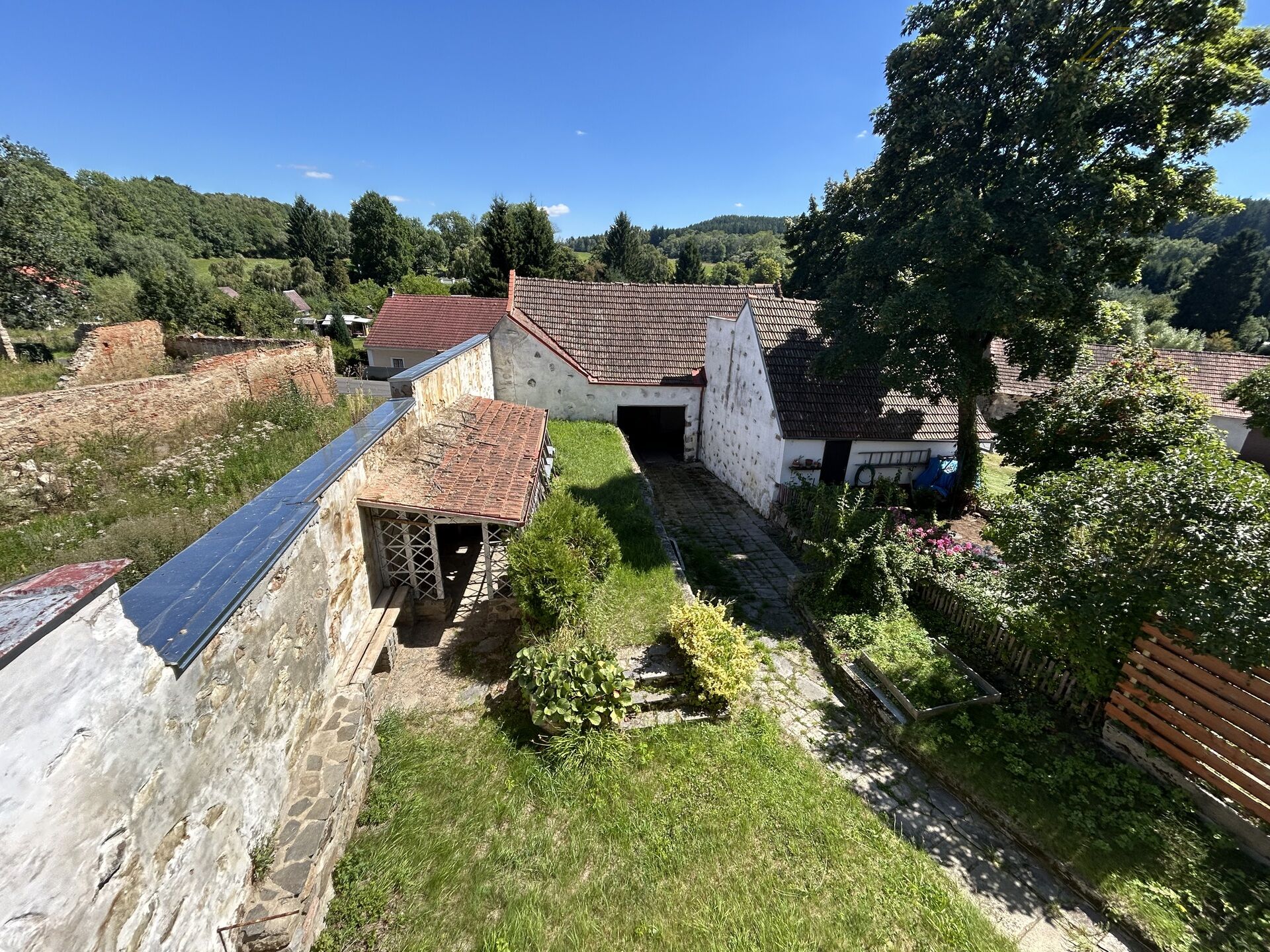 • Okna a dveře jsou nová, plastová. Střecha má pálenou krytinu, vytápění je řešeno centrálním kotlem na pevná paliva.