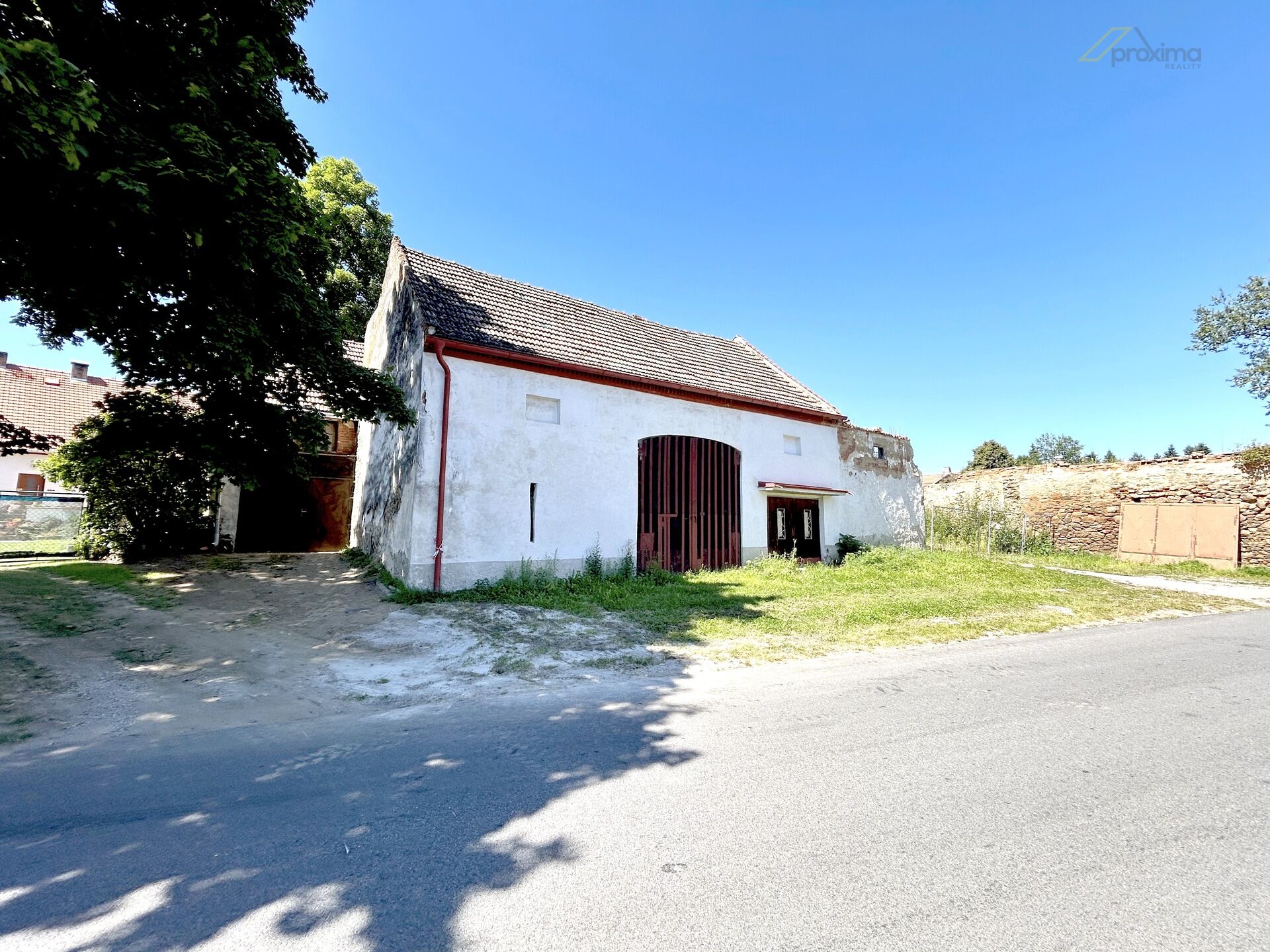 Spodní objekt stodoly (cca 100 m2) lze využít jako sklad a místo pro parkování, v současnosti je zde garáž a sklad.