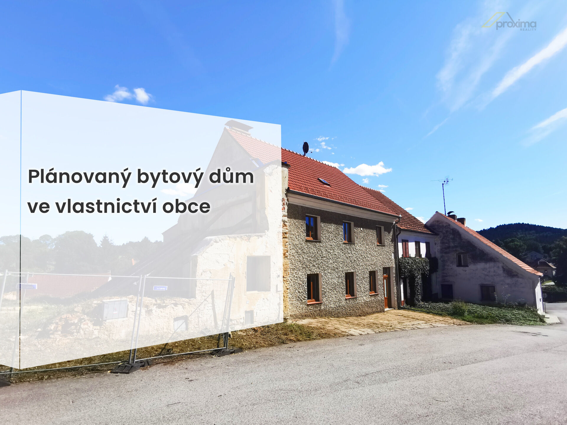 • V místě sousedního objektu obec plánuje výstavbu bytového domu - více informací v RK, na stránkách obce a obecním úřadu.