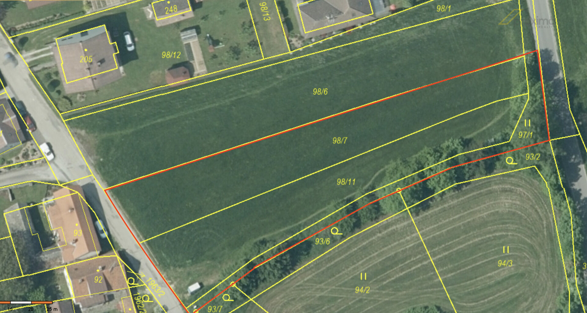 Jedná se o celkem 2.573 m2 rovinatých, slunných pozemků (parcely č. 98/7, 98/11, část 97/1 v k.ú. a obci Soběnov).