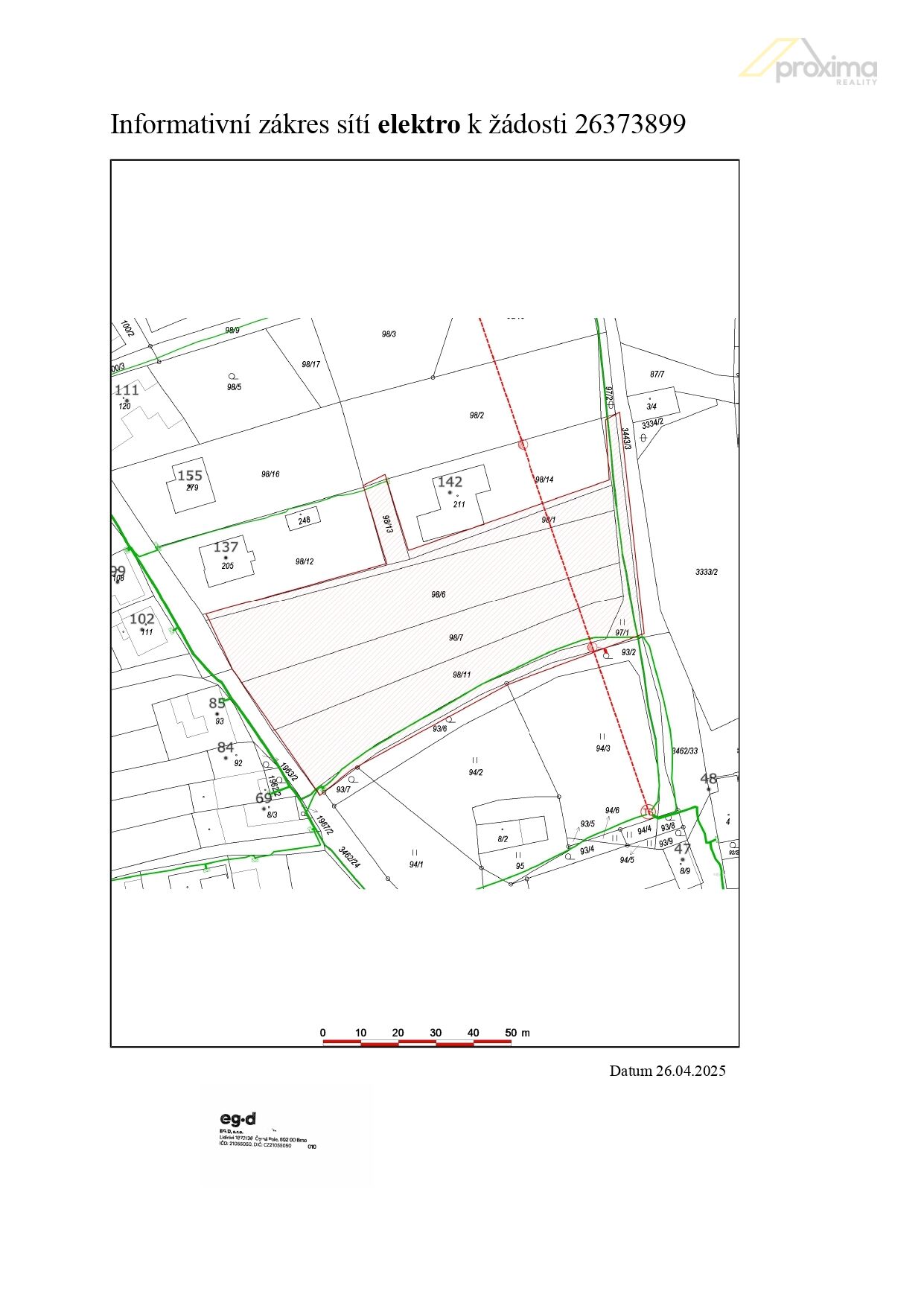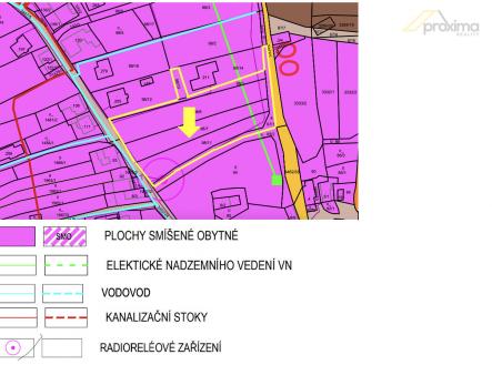 - Elektřina: Podzemní vedení NN je umístěno na okraji pozemku (kaplička). Přes pozemek také vede nadzemní vedení VN a je nutné zachovat ochranná pásma.